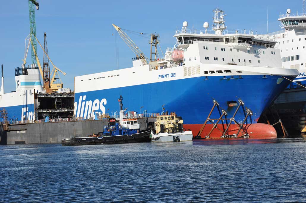 In der letzten Woche hat Finnlines die erste verlängerte RoRo-Fähre der „Breeze Klasse“ übernommen. Mit der Finntide begann ein ehrgeiziges Programm bei Finnlines zur Verlängerung alle RoRo-Fähren der „Breeze-Klasse“ um ca. 30 Meter. Finntide verfügt nun nach der Verlängerung über rund 1.000 zusätzliche Lademeter. Wie geplant wurde das Schiff in zwei Teile geschnitten und ein 30-Meter-Stück zwischen beiden Teilen eingefügt. Trotz der Steigerung der Kapazität wird der Energieverbrauch pro transportiert Frachteinheit weiter reduziert. Nach dem Umbau ist die MS Finntide nun 217,77 Meter lang und hat eine Kapazität von 4.213 Lademetern.