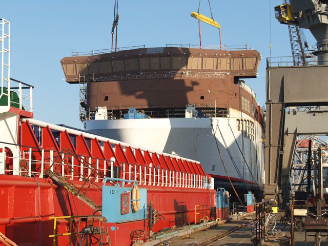 Weiter gut voran kommt der Bau der beiden Neubauten für Scandlines bei der FAYARD-Werft auf Fünen. Nun hat in dieser Woche die Fähre Berlin als Erste eine neue Brücke bekommen. Diese ist nun doch auf dem obersten Deck installiert wurden. Damit bietet sich nun den Offizieren eine noch bessere Sicht zum Navigieren. Gleichzeitig bekommen die Brücken ein Update für die Navigationsausrüstung in Zusammenarbeit mit der Firma SAM. Bald werden bis zu 500 Mann mit der Fertigstellung beschäftigt sein. Die verbleibende Arbeit umfasst unter anderem die Installation der sogenannten Closed-Loop-Scrubber, den Austausch der Verkabelung, die Montage der Heizungs-, Belüftungs- und Klimaanlagen sowie den Einbau des neuen Interieurs aus Leichtbaumaterialien auf Deck 7 und 8.