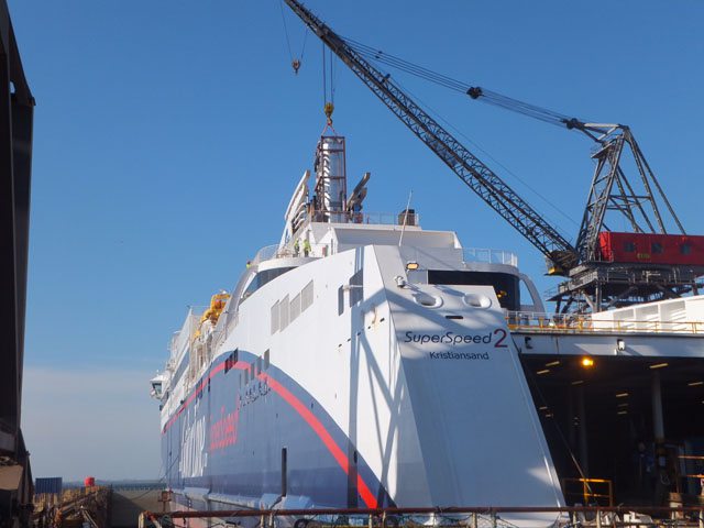 Die Superspeed 2 der Reederei Color Line wurde im März 2014 erfolgreich mit Scrubbern (Abgaswaschanlagen) ausgerüstet. Diese Katalysatoren filtern Schwefel aus den Abgasen und senken den Schwefelausstoß von einem auf 0,1 Prozent. Auf der Fayard-Werft wurden im März durch Wärtsilä die Scrubber im Schiff installiert. Nach einer erfolgreicher Testphase des neuen Systems werden diese Scrubbern dann in drei weitere Fähren der Reederei eingebaut. Zum Einsatz kommt hier das neue Wärtsilä inline Scrubber System. Hierbei handelt es sich um einen sogenannten Open Loop Scrubber.