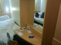 Die 1-2 Bett Außenkabine verteilen sich an Bord der Premium-Fähren auf Deck 8 und 9. Sie bieten nur Platz für zwei Personen und verfügen nicht über mehr Betten. So befinden sich in der Kabine zwei untere Betten (80 cm) wovon eins als Tagessofa benutzt werden kann. Weiter bietet die Kabine einen kleinen Schreibtisch mit Spiegel und eine Garderobe. In dieser Kabinenkategorie gibt es keinen Fernseher. Das Bad ist zweckmäßig eingerichtet mit einem WC und einer Dusche mit Vorhang. Diese 1-2 Bett Außenkabinen sind auch als 1-2 Bett Innenkabine zubekommen.