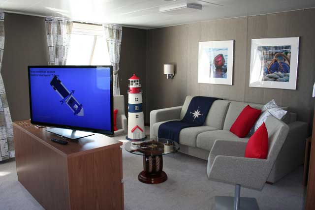 Da die Fähren der Star-Klasse nun schon länger im Einsatz sind, hat Finnlines sich dazu entschlossen die Suiten zu modernisieren. Im Rahmen der Werftaufenthalte der Star-Klasse wurden nun die Junior-Suiten und Owner´s-Suiten komplett überarbeitet. Dabei lösen nun die hellen Farben die alten dunklen Farben die sich in allen Kabinen befinden ab. Einzug gehalten haben nun maritime Farben, Dekoelemente und Bilder. Daneben wurden die Sofa und Sessel neu bezogen und ein neuer heller Teppich verlegt. Das Doppelbett erhielt neue Kissen mit Maritimenelementen und eine blaue Tagesdecke. Die alten Vorhänge an den Fenstern wurden durch neue hellere ersetzt. Auch die alten Fernseher sind verschwunden und wurden durch moderne Flat-TV ersetzt. Insgesamt machen die Suiten nun einen freundlicheren Eindruck.