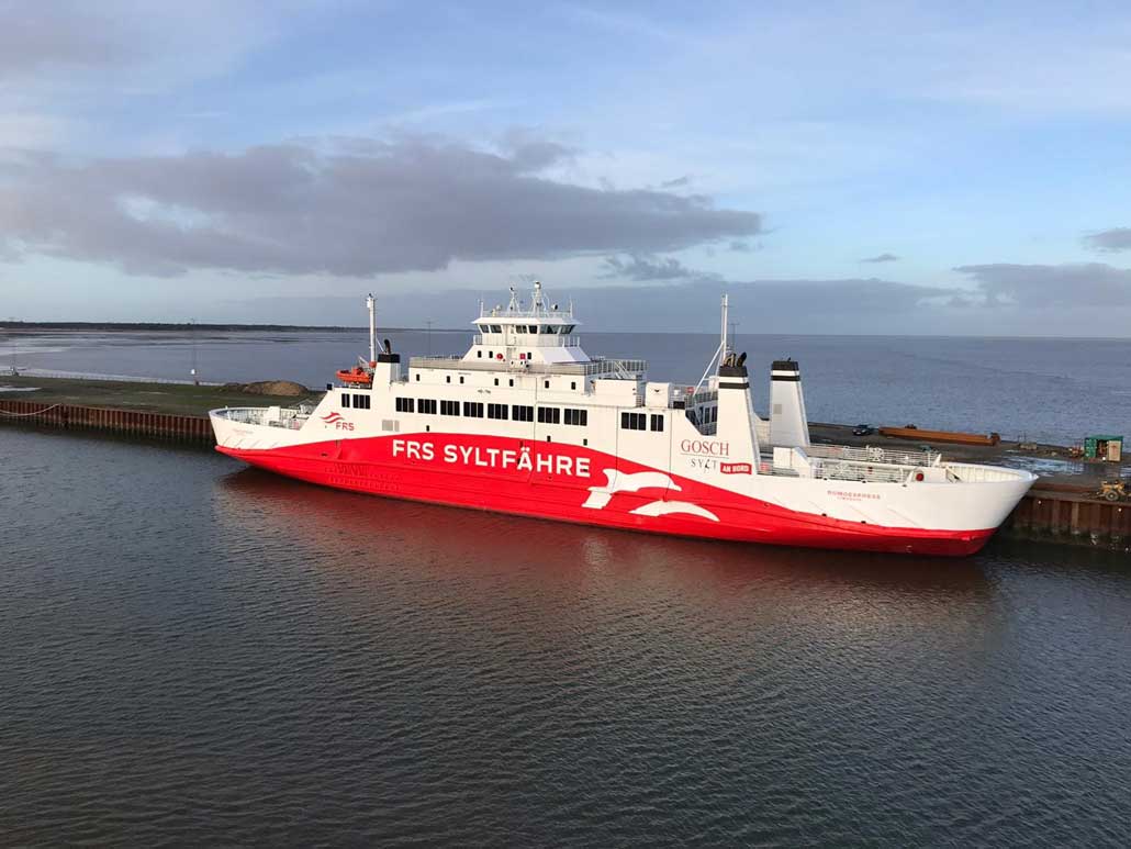 Im Frühjahr 2021 erhält dann auch die SYLTEXPRESS bei ihrem geplanten Werftaufenthalt das neue Design. Gleichzeitig erhalten auch alle vier Fähren der FRS Elbfähre den neuen Farbanstrich mit Delphinwelle.