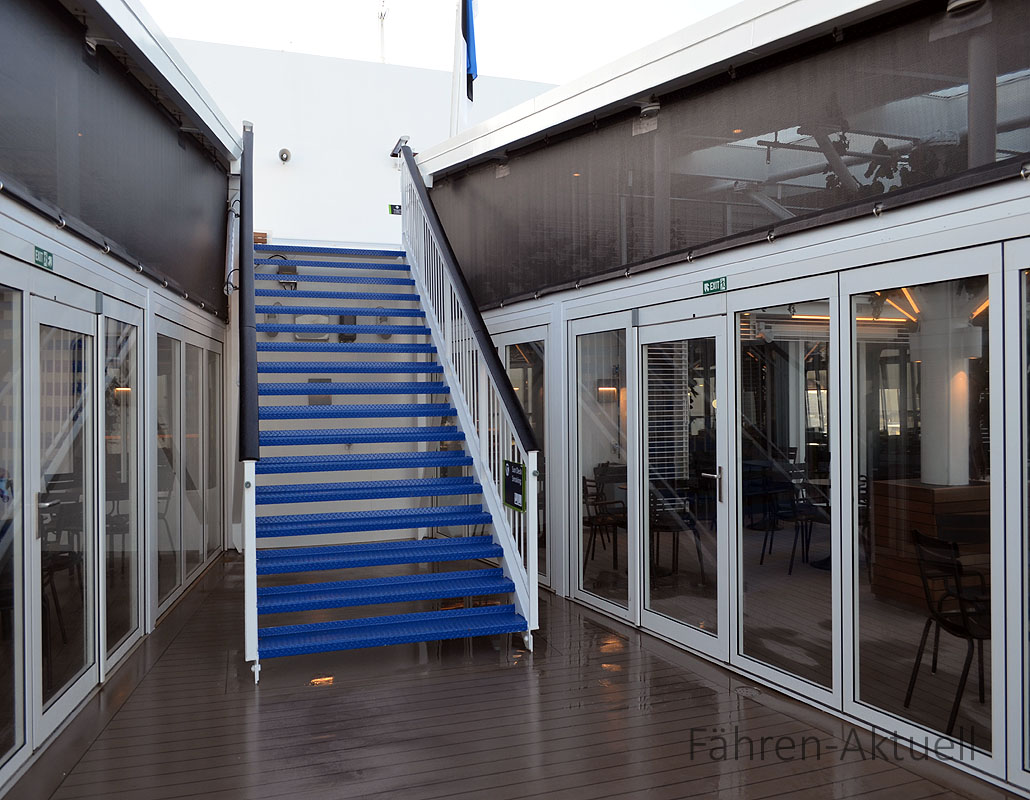 - Außendeck mit Zugang zu den Wintergärten für Passagiere an Bord der Megastar – Bildquelle: Fähren-Aktuell