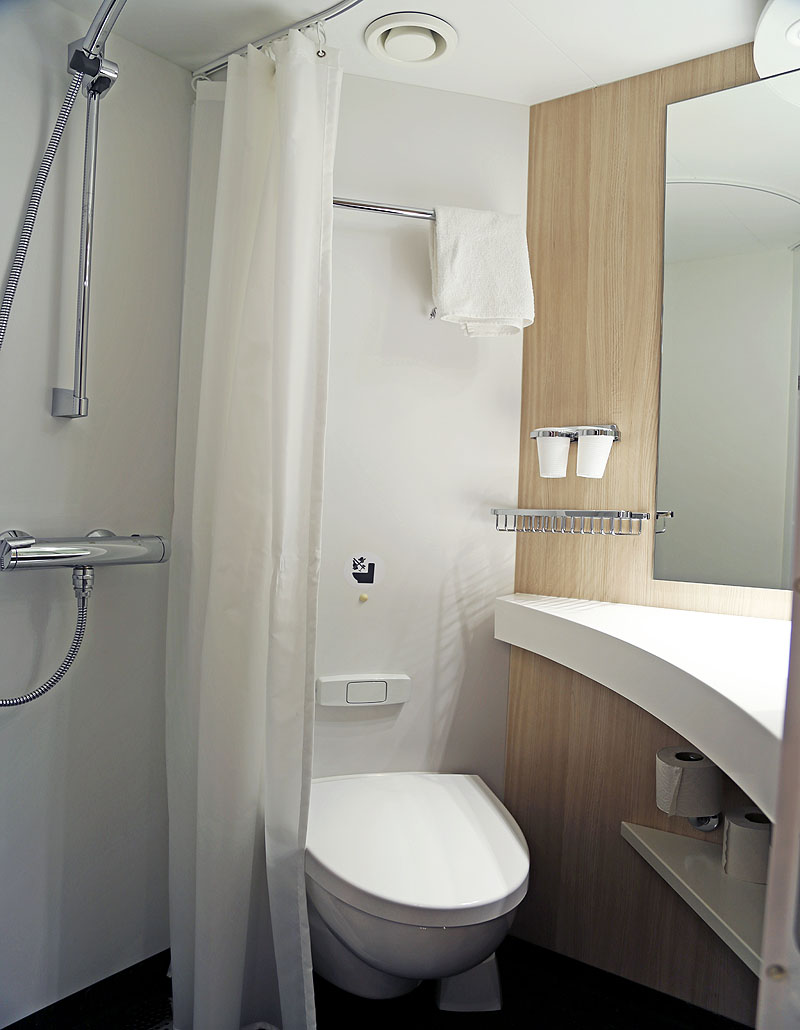 Die B-Class Innenkabine für 1 – 4 Personen befinden sich auf Deck 10 der Megastar. Sie verfügen über vier separate Betten, WC mit Dusche, Garderobe, einen kleinen Tisch mit Stuhl. Für Allergiker gibt es zwei B-Class Innenkabinen und für Passagiere mit Handicap stehen ebenfalls B-Class Innenkabinen bereit.