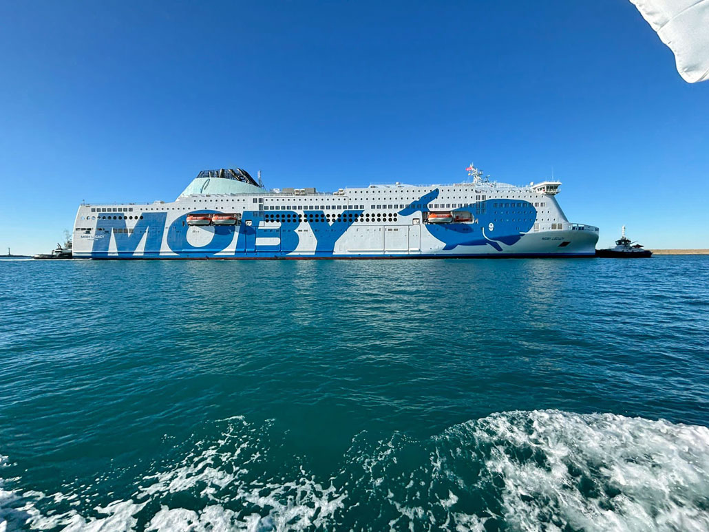 Heute am 28. Januar 2024 erreichte der zweite Neubau für Moby Lines, die MOBY LEGACY den Hafen von Livorno. Nach der langen Überführung aus China mit einem Umweg über Afrika konnte Moby Lines den Neubau heute in Italien in Empfang nehmen. Insgesamt dauerte die Überführung 32 Tage und es wurden 14.000 Seemeilen bis Livorno zurückgelegt. Am 27. Dezember 2023 startet die Überführung von der chinesischen Werft und es wurden dabei der Ozeane überquert. Nun endlich ist die MOBY LEGACY unter Führung ihres Kapitäns Massimo Pinsolo in Livorno angekommen.