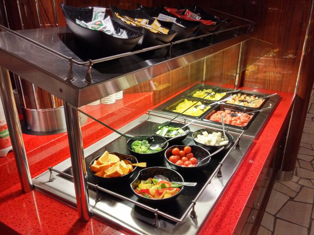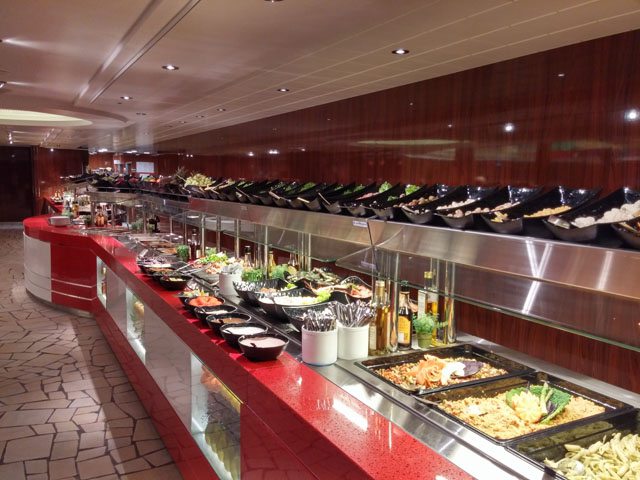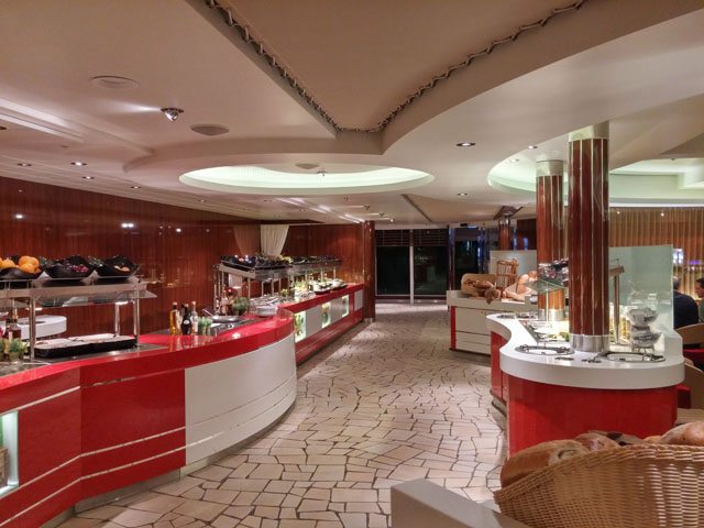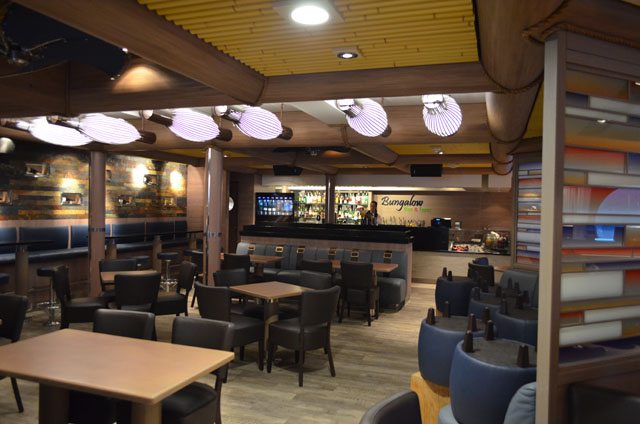 Das Bungalow Wine & Tapas befindet sich im vorderen Teil auf Deck 7 und bietet Platz für 104 Gäste. Hier bekommt man verschiedene Weine aus der sehr umfangreichen Weinkarte und eine große Auswahl an Tapas.