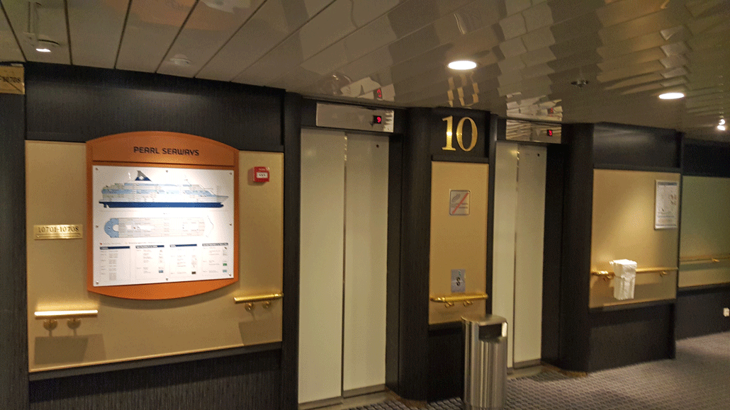 Die Pearl Seaways verfügt über doch sehr großzügige Innen- und Außendecks. Es ist in allen Gängen viel Platz und man kommt zurecht. In jedem Treppenhaus hängen Hinweisschilder, die einem dem Weg weisen. Gäste der Commodore Class/Deluxe werden schon vor ihren Kabinen von einem Steward erwartet und mit wichtigen Infos versorgt. Auf den Decks 7 und 8 gibt es große Fenster und auf beiden Decks stehen sehr gute Schiffsmodelle von DFDS Seaways.
