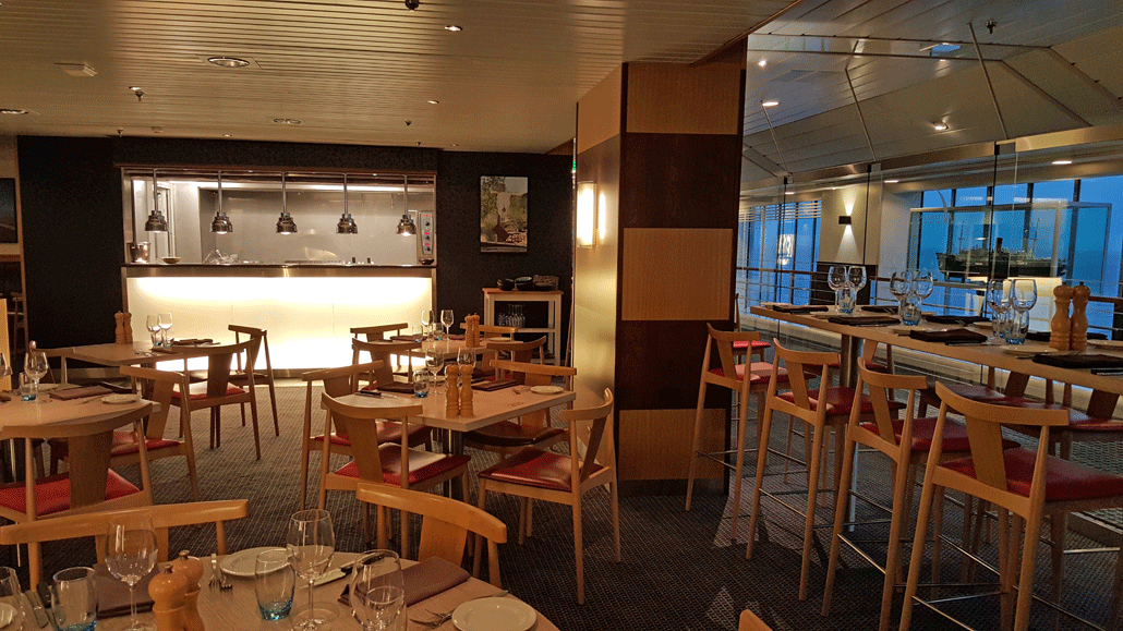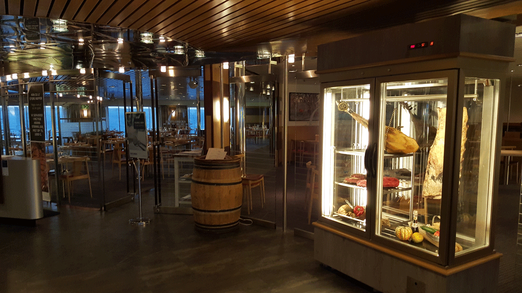 Das Steakhouse an Bord befindet sich auf Deck 8 in der Mitte der Fähre. Genießen Sie hier in sehr schöner Atmosphäre ein 2-Gänge-Menü. Für ein gutes Steak ist jeder Schritt von der Aufzucht bis zum Servieren bedeutend. Schon am Eingang zum Steakhouse können Sie sich ihr Fleisch anschauen. Für Kinder bietet das Explorers ein spezielles Kindermenü an.