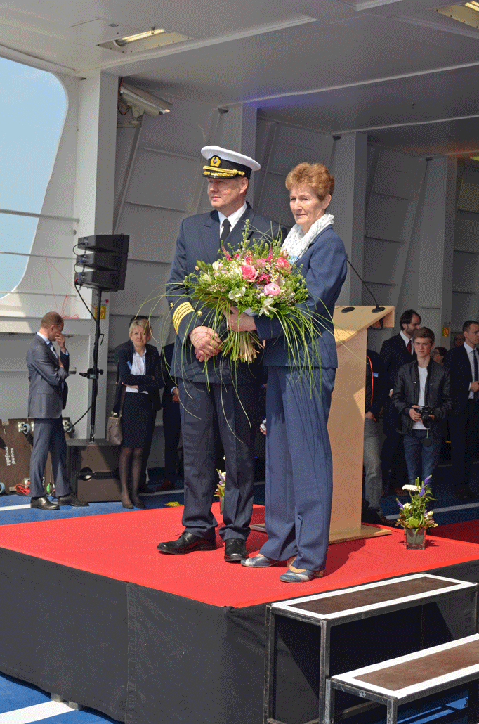 - Taufpatin Ines Rehberg und Kapitän Adam – Bildquelle: Fähren-Aktuell