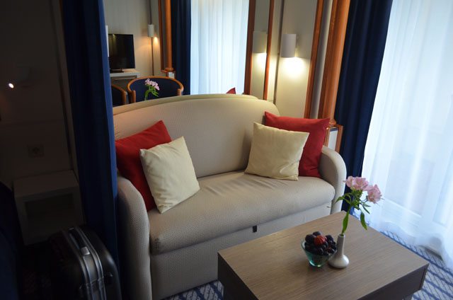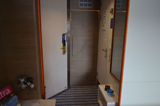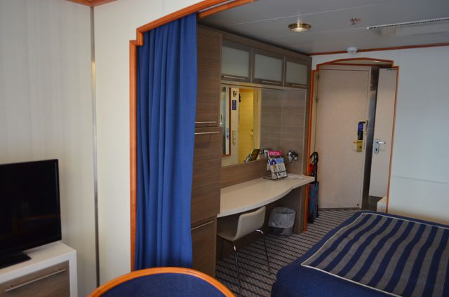 Dazu kommt, dass beide Sessel nicht überarbeitet wurden, ein Beziehen mit neuem Stoff hätte dabei schon gereicht. Dann ist immer noch das alte braune Holz vorhanden, das passt aber meiner Meinung nach nicht mit zu den neuen weißen Wänden und den neuen modernen Einbauschränken. In den Commodore Kabinen ohne Balkon, wurde das alte braune Holz weiß gestrichen. Es wirkt, als gebe es keine zusammenpassende Struktur in der Inneneinrichtung.
