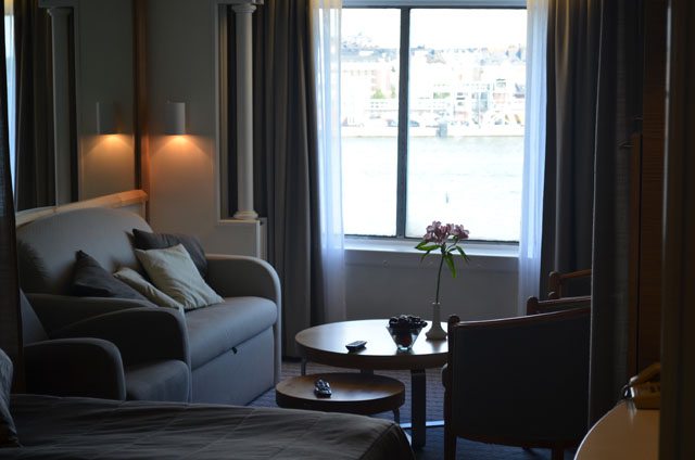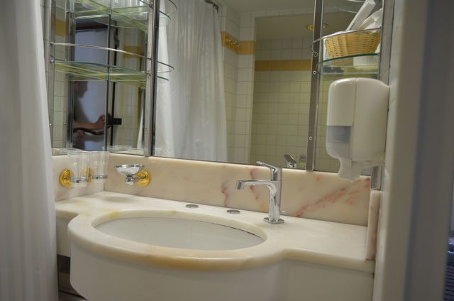 Kommen wir nun zu der Commodore Class Kabine an Bord der Silja Serenade. Die Commodore Class Kabinen verteilen sich alle auf Deck 10 und 11 im vorderen Bereich der Silja Serenade. Dieser Bereich ist zusätzlich mit Türen gesichert und man hat nur Zugang mit seiner Kabinenkarte. Allerdings sind fast alle Türen defekt bzw. schließen nicht mehr richtig. Als Gast im Commodore Bereich hat man zusätzlich Zugang zur Commodore Lounge in der getrennte Saunen zur Verfügung stehen. Die Lounge bietet dabei eine Bar (Getränke und Gebäck) in der man als Gast herzlich vom Personal begrüßt wird.